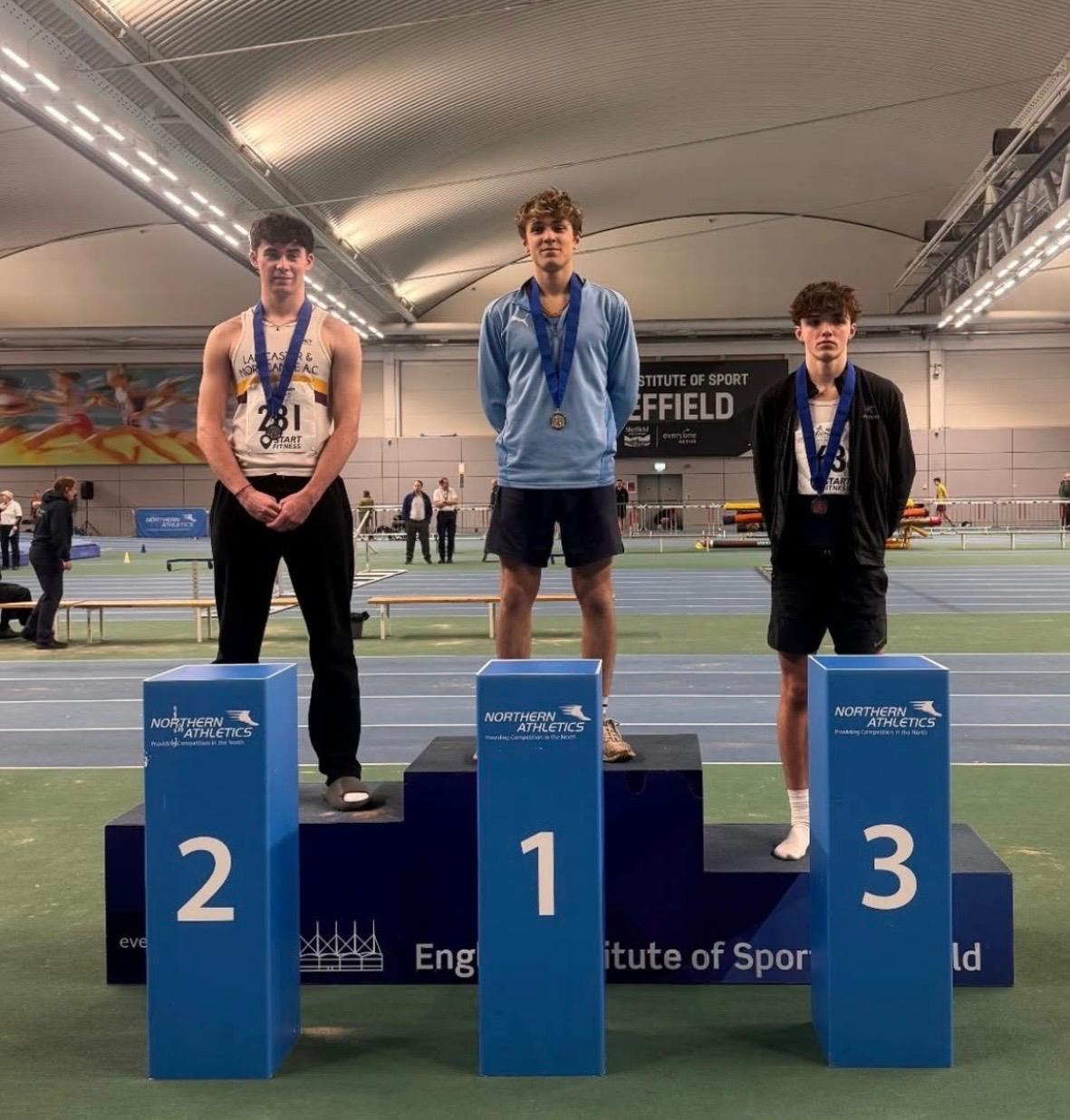 Simon Bordewich struck gold in the U17 boys race at the North of England Indoor Championships in Sheffield, achieving a new personal best of 50.24s.