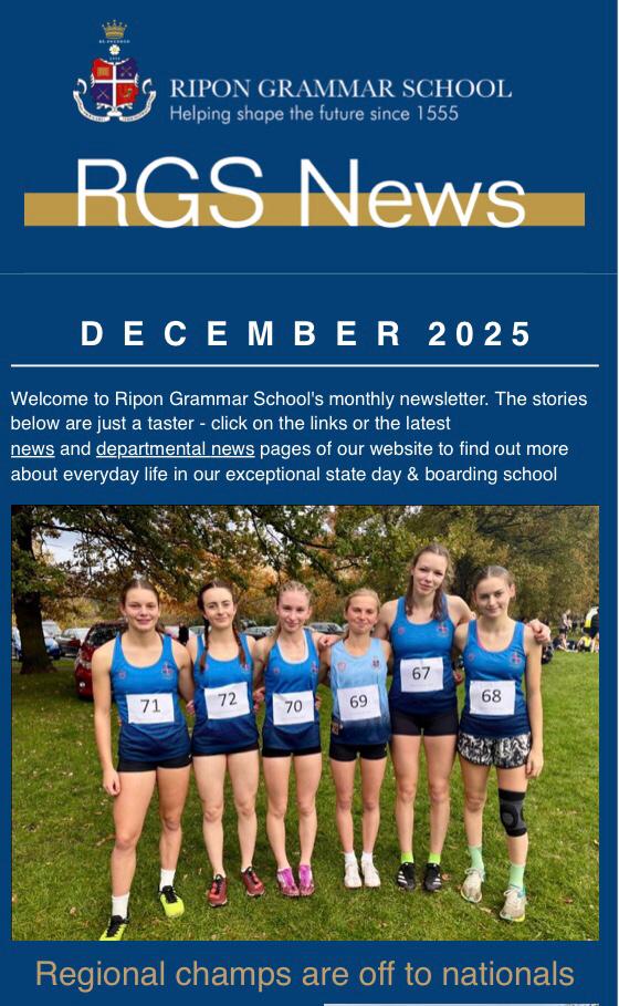 RGS News is the Ripon Grammar School magazine, full of news about student achievements and school events, which was published termly until March 2019 when we launched a new, monthly email newsletter.