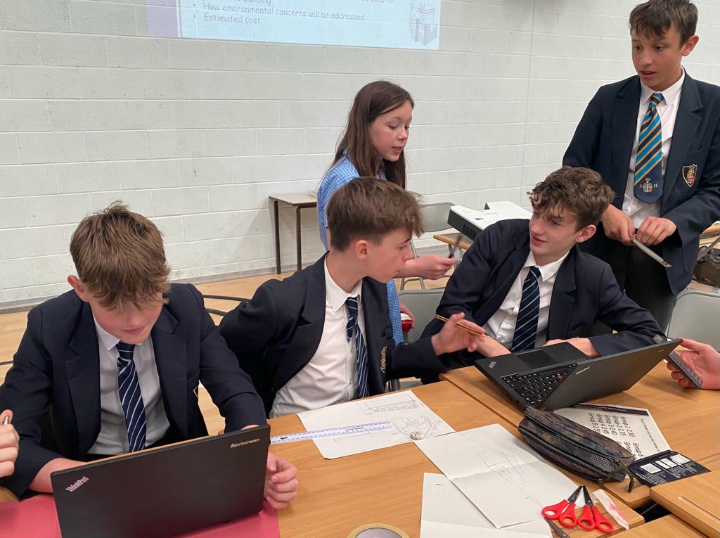 Tasked with producing the most innovative, cost-effective and environmentally friendly designs, Year 8 pupils divided into teams to spend two days researching, designing and costing their projects. Once complete, each team unveiled their 3D model and delivered a five-minute presentation and pitch to a panel of judges.